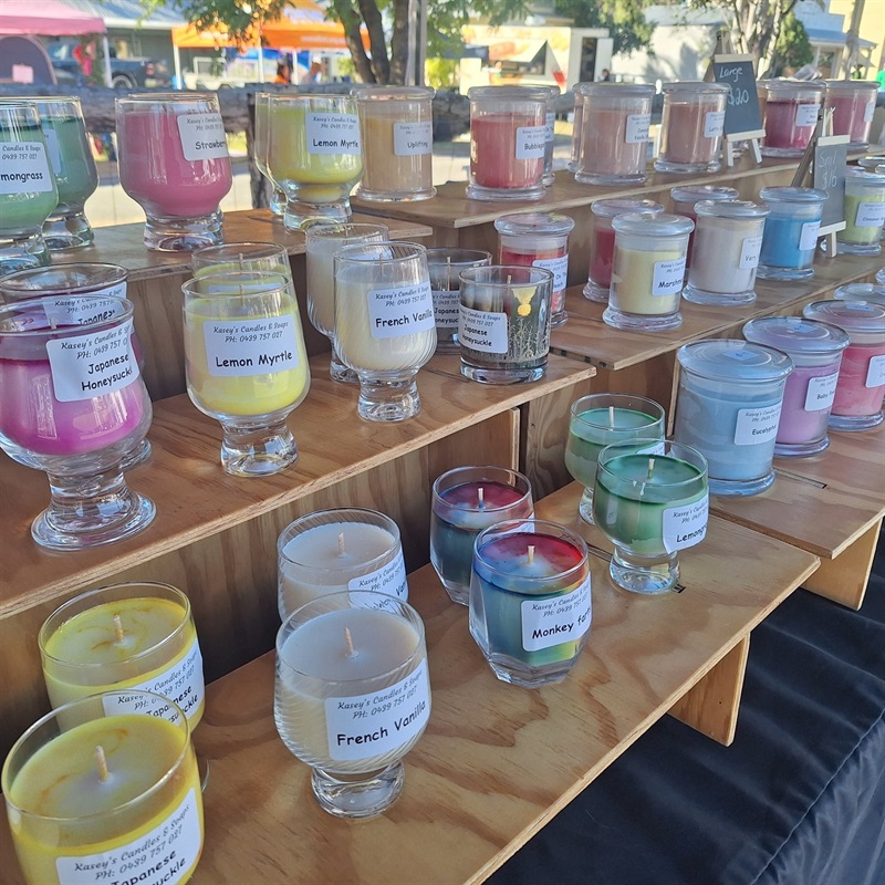 Kasey's Candles and Soaps Explore the collection of locally made candles and soaps. These come in a variety of jars and colours. Each candle is made with care to bring warmth and charm to your space.